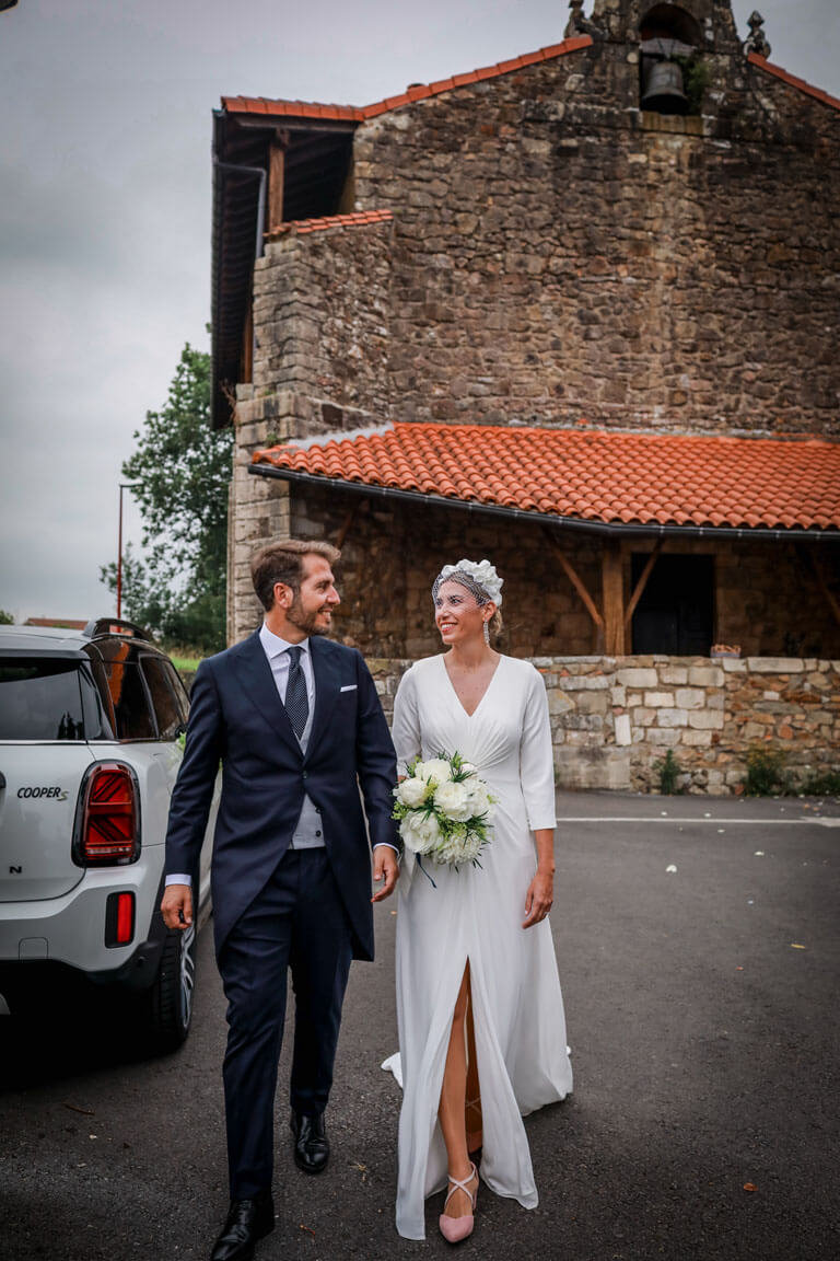 Tras una ceremonia en la iglesia, los novios y sus invitados se trasladaron al campo de golf de Laukariz para disfrutar del cóctel. Justo cuando parecía que el tiempo jugaba en contra, cayó un chaparrón… y fue lo mejor que pudo pasar.