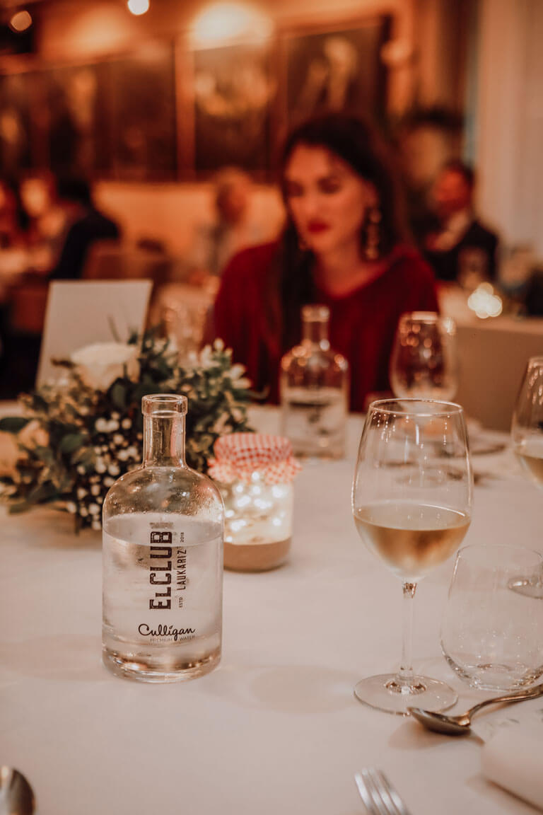 El día comenzó en uno de los hoteles más icónicos de Bilbao. La novia se vistió en el Hotel Carlton, rodeada de lujo, tranquilidad y detalles cuidados. Las imágenes de los preparativos, con los ventanales clásicos, el vestido suspendido entre luces suaves y el ambiente de expectación, marcaron el tono sofisticado de todo el evento.