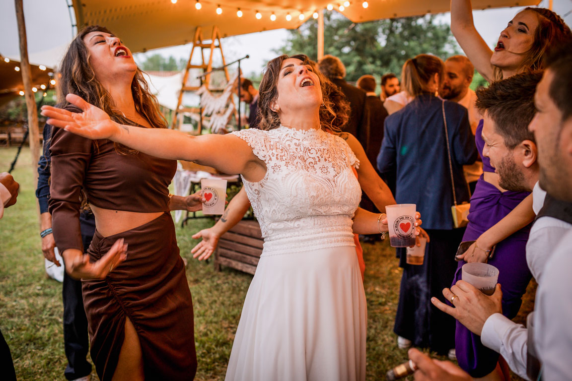 La novia se encargó con cariño de cada detalle: vasos personalizados para las bebidas, objetos decorativos con aire rockero y un enfoque DIY que llenó la finca de calidez y carácter. El resultado fue una boda auténtica, con alma.