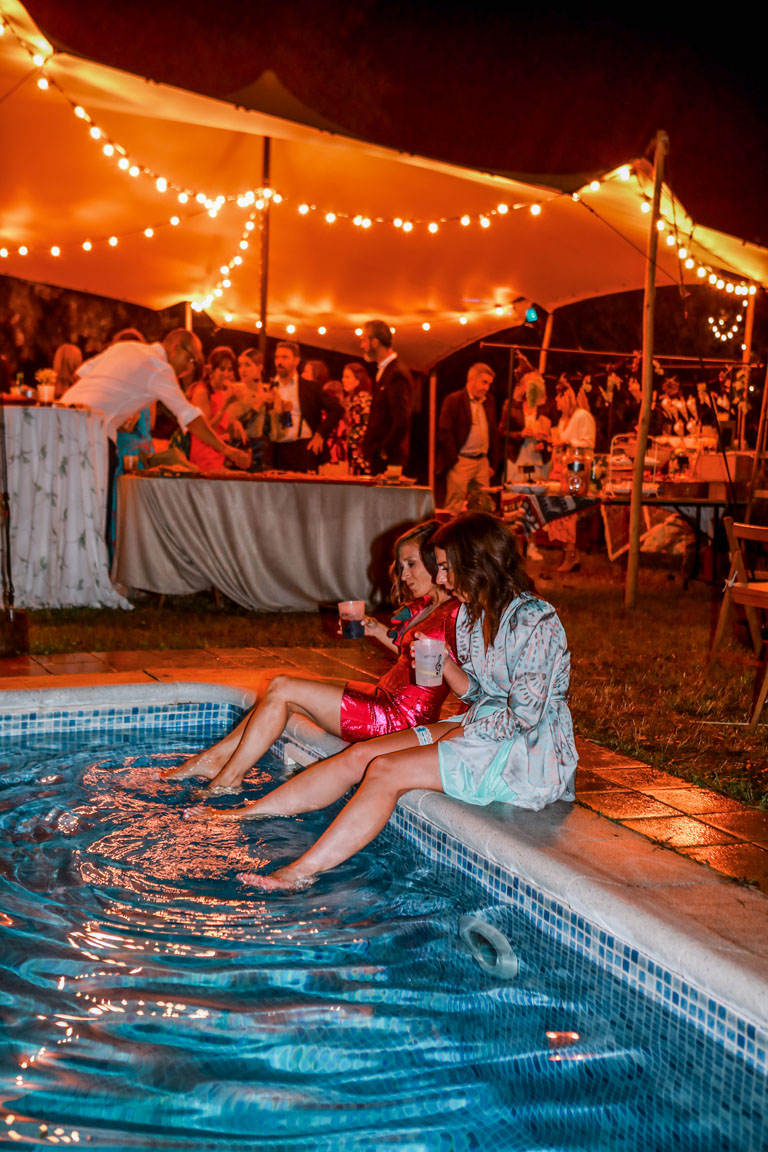 ¿Fiesta? ¡Pura vida! Los invitados se disfrazaron, bailaron sin parar y hasta hubo un espontáneo que se desnudó y se lanzó a la piscina. Fuegos artificiales, música en directo, los novios cantando y riendo hasta bien entrada la madrugada… cada minuto fue un regalo.